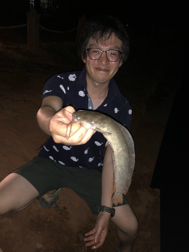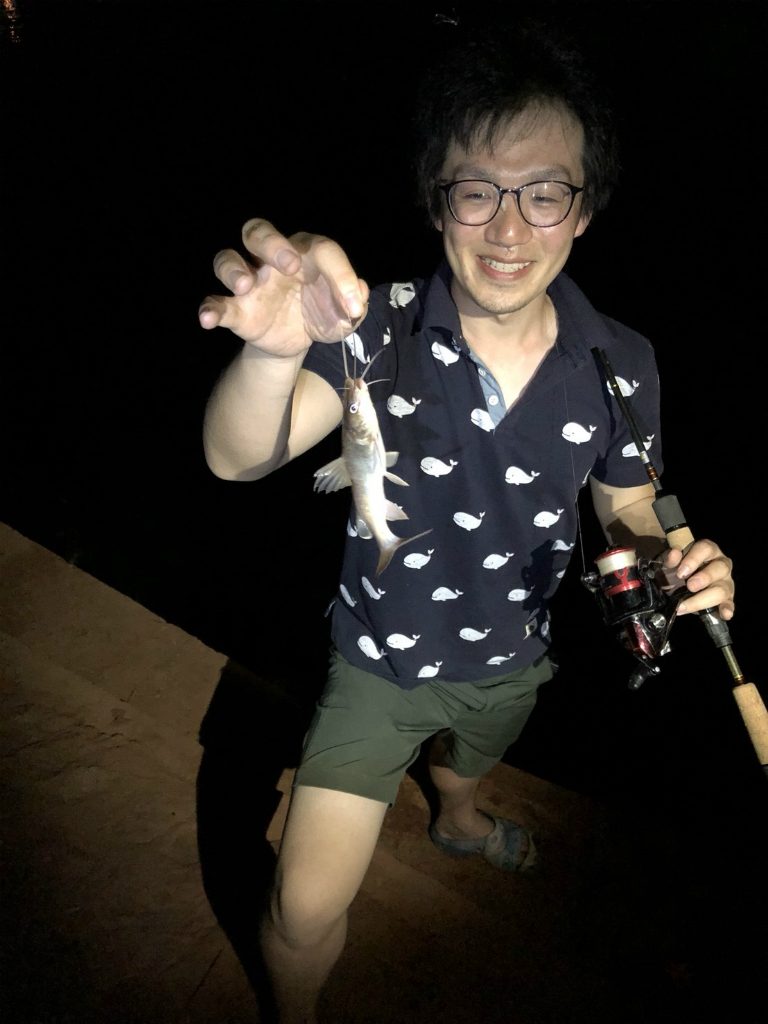 村からシェムリアップに帰ってきた日の夜、佐藤さんのバイクに乗って近くの川にまだ見ぬ魚達を求めて釣りに行くことになった。