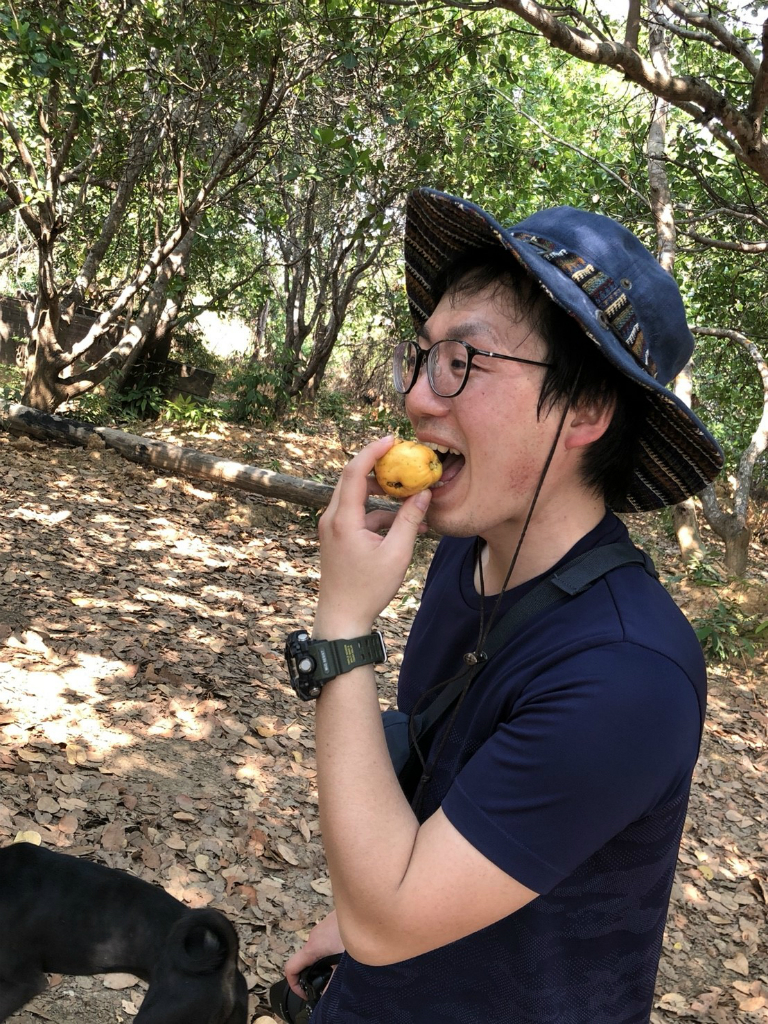 カシューナッツの実をガブリ。ちょっと口の中がかゆい…。