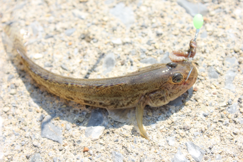 街の外れの漁港での投げ釣りで釣れたマハゼ Acanthogobius flavimanus。