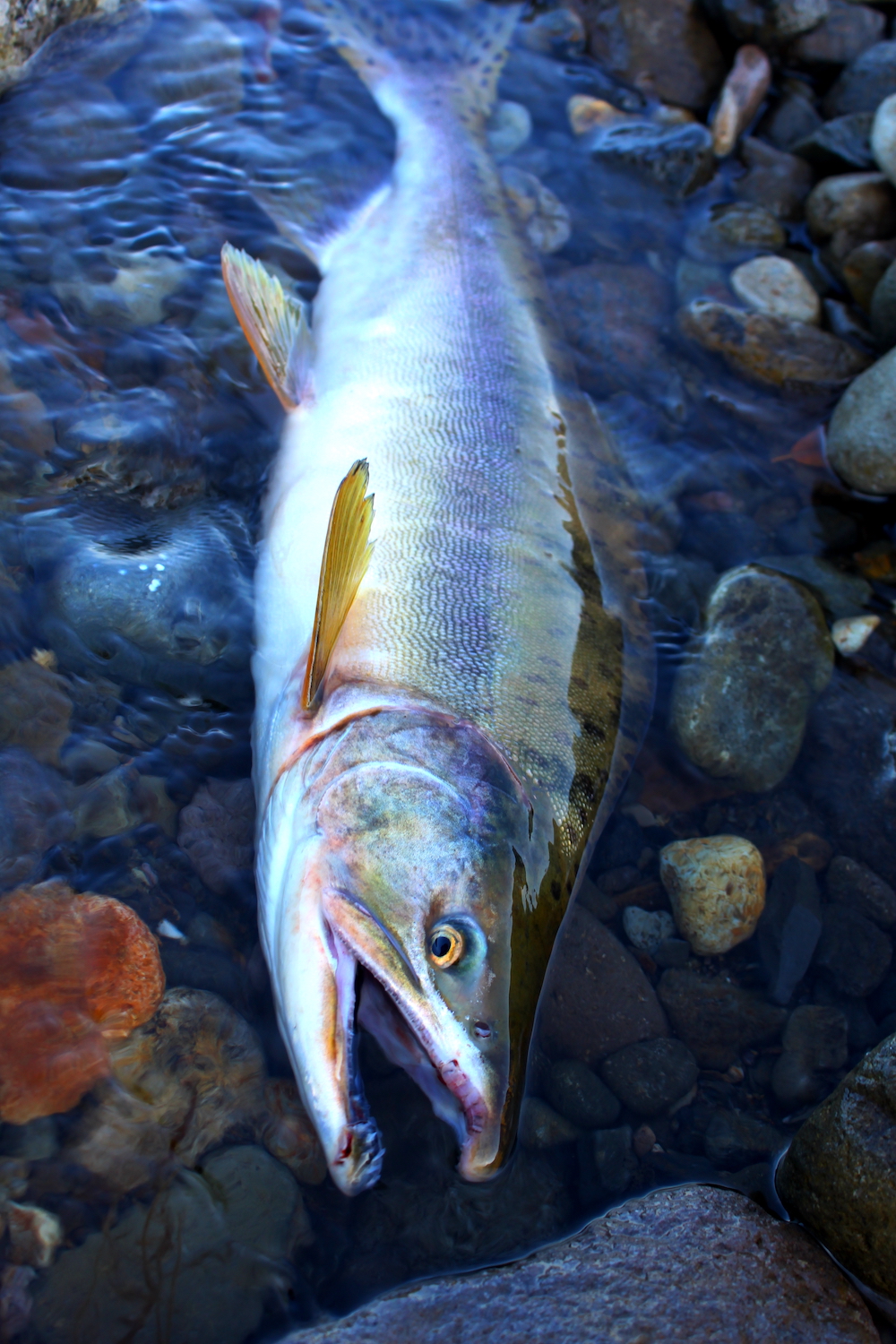 知床半島にて、カラフトマス Oncorhynchus gorbuscha。