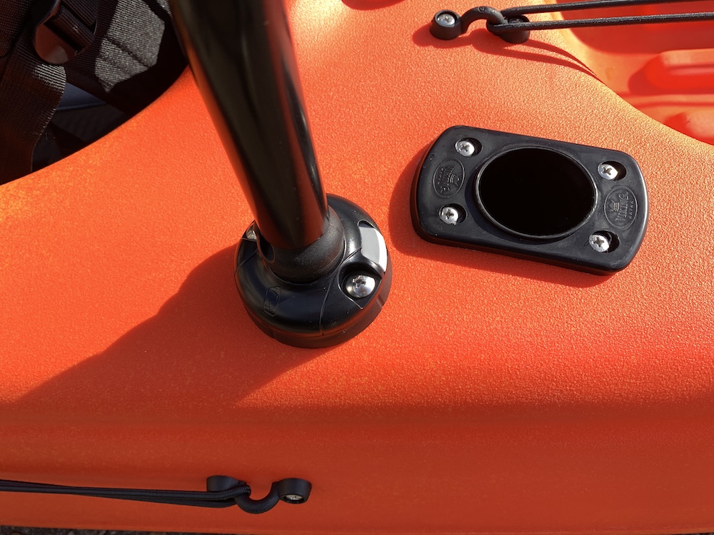 まずは、余っていたスターポートを座席の後方のロッドホルダー前に取り付け。