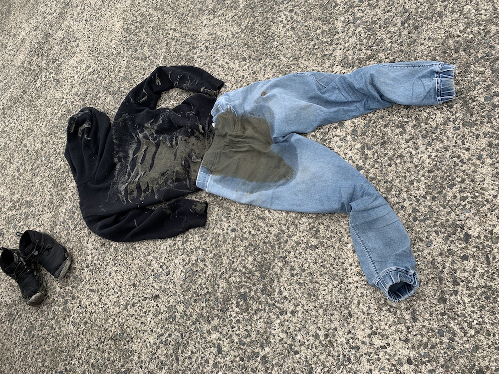 帰ってきたら、スロープに残った干潟の泥に足を滑らせ、背中で潟スキーをしてきたのでした。笑