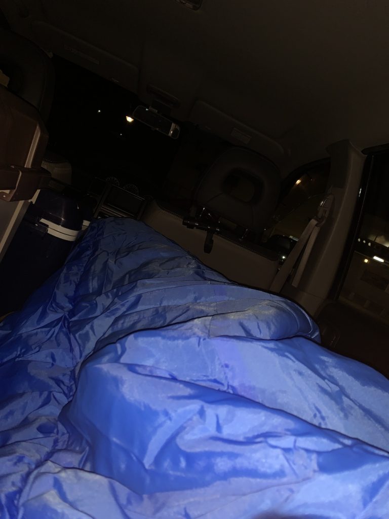 後部座席を倒して仮眠。尾鷲と言えど、この時期はやっぱり寒いね…