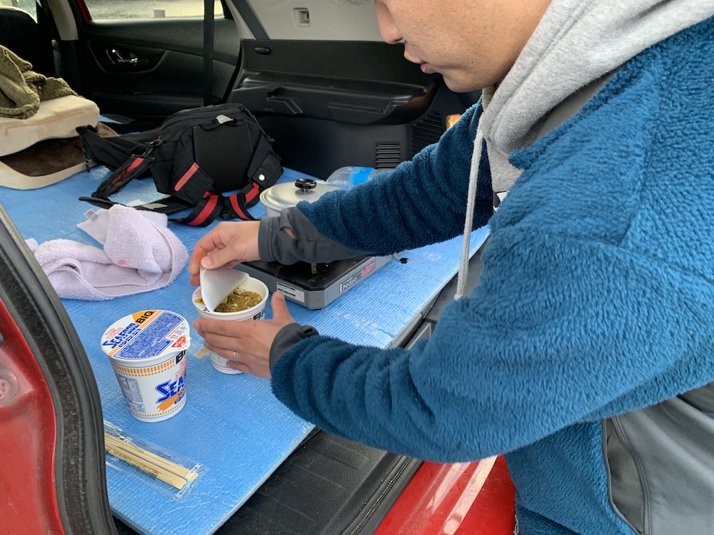 3時過ぎに陸に上がり、友人がカップラーメンを作ってくれた!