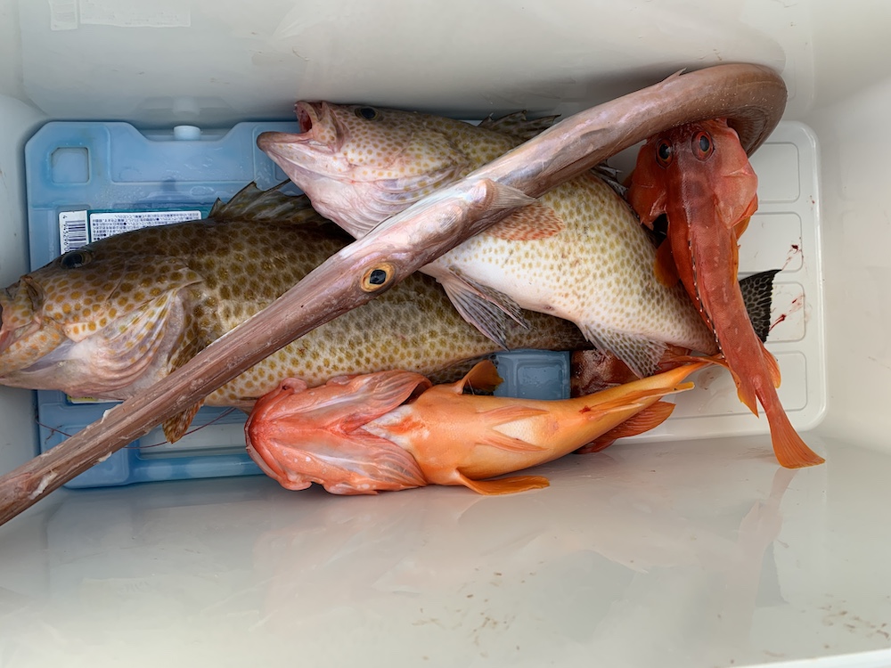 アカハタでした!これまた赤い魚、めでたい!(ということにしておこう)