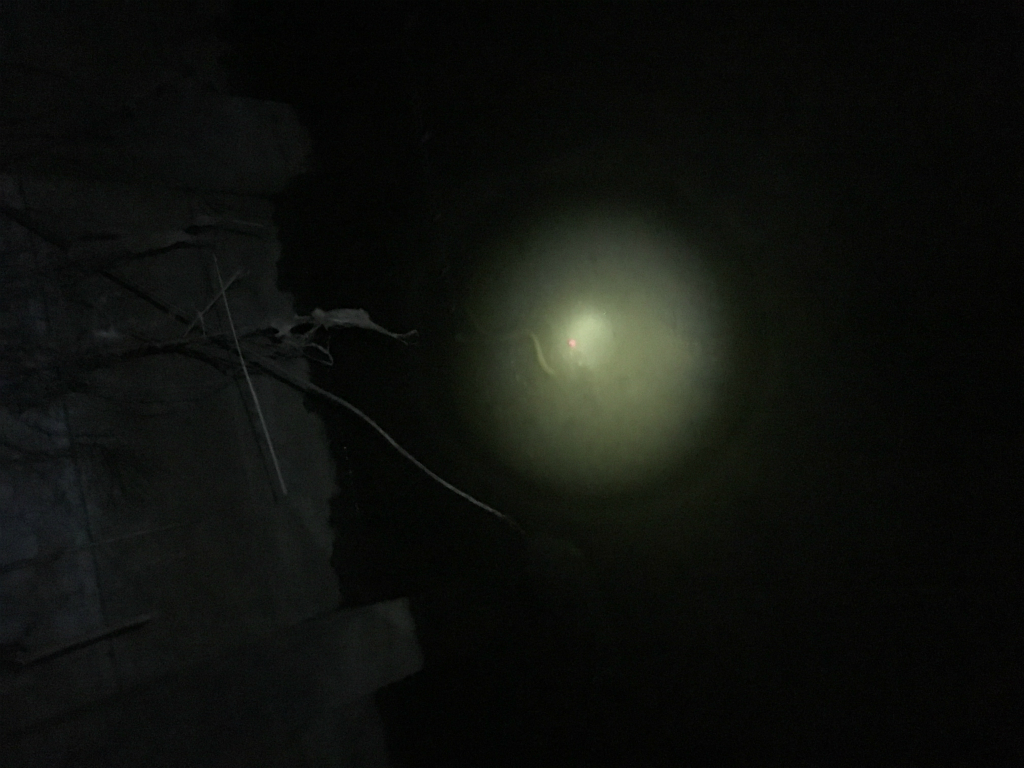 懐中電灯で用水路を照らしながら、進んで行くとコンクリの割れ目から顔が出てた!さっきよりもでかい!