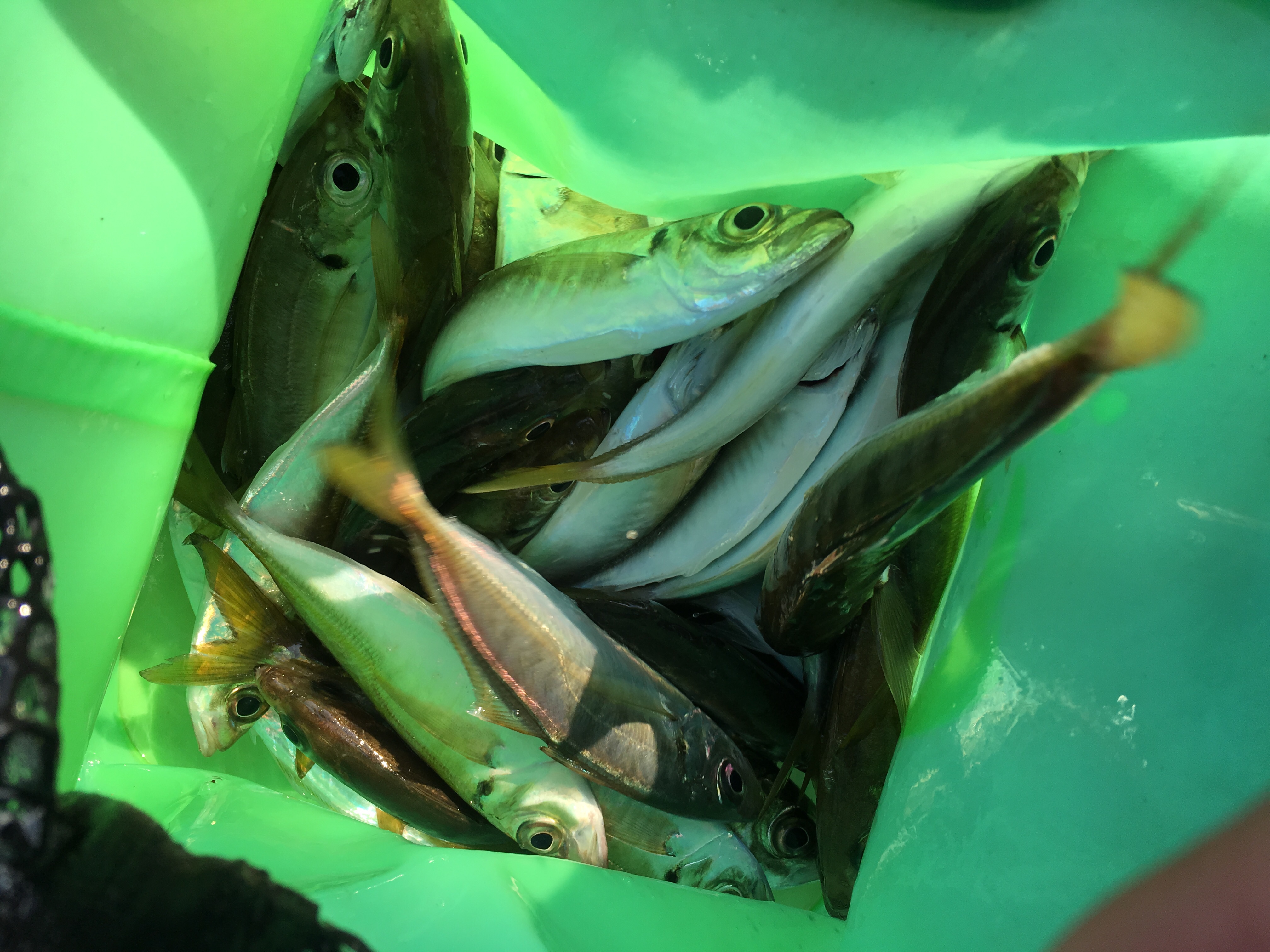 隣のオッチャンがアジを爆釣してたので、朝まずめがちょっと過ぎた頃からはアジ釣りにシフト。
